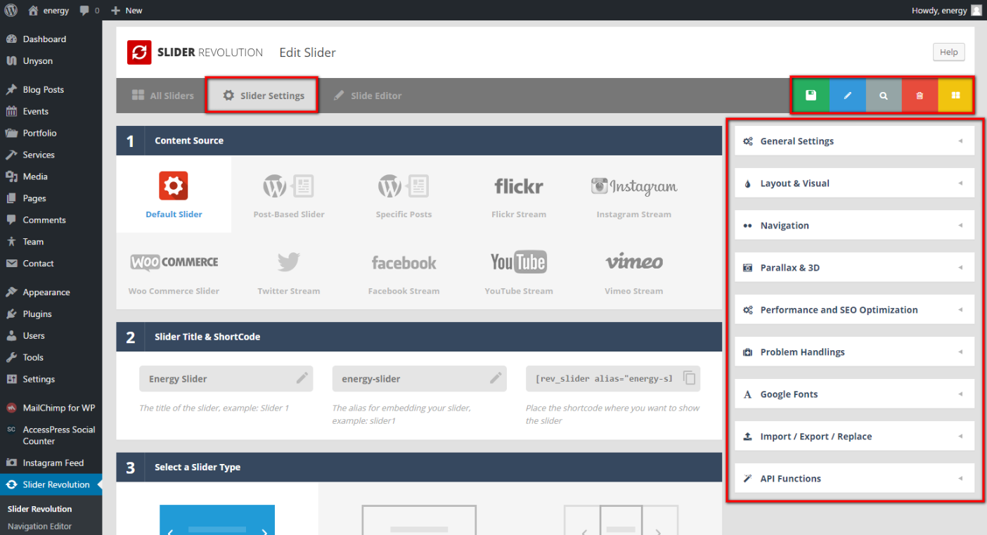 Click the Energy Slider and you will see different settings: