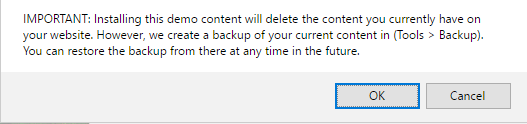 9. Then click "Install" button. This is very important: After demo content installation all your existing content will be overwritten!