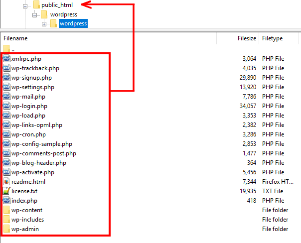 5. Move unpacked files and folders from WordPress directory to your public_html directory: